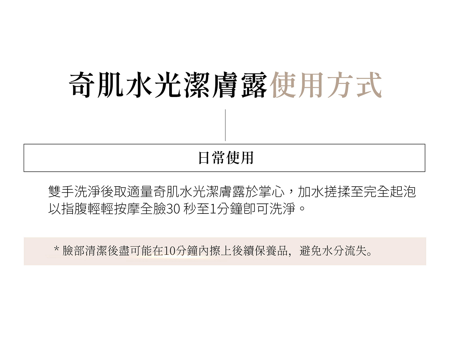 *臉部清潔後盡可能在10分鐘內擦上後續保養品,避免水分流失。