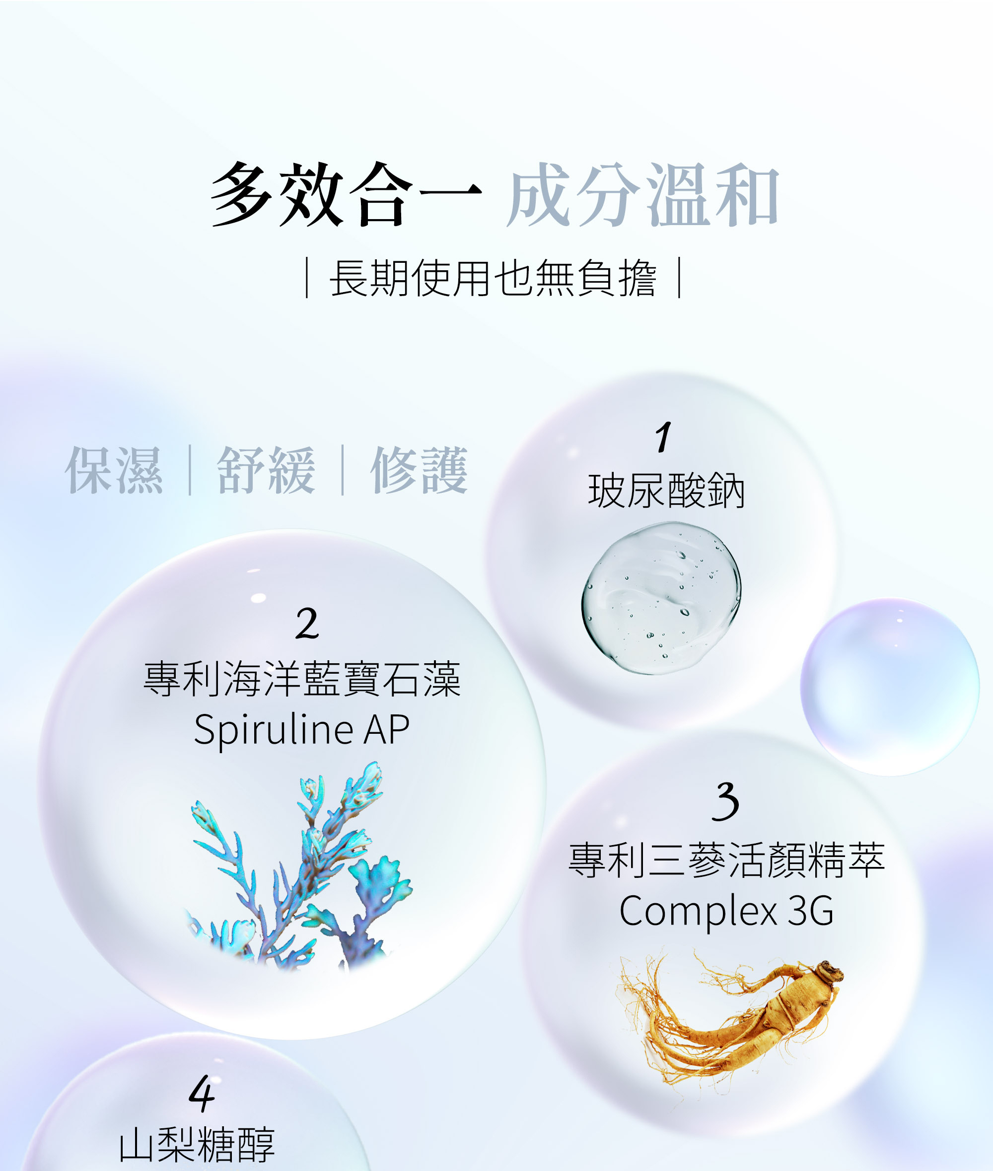 *後續可搭配奇蹟修護精粹/緊緻提亮面膜加強保濕。